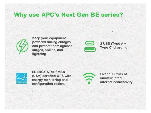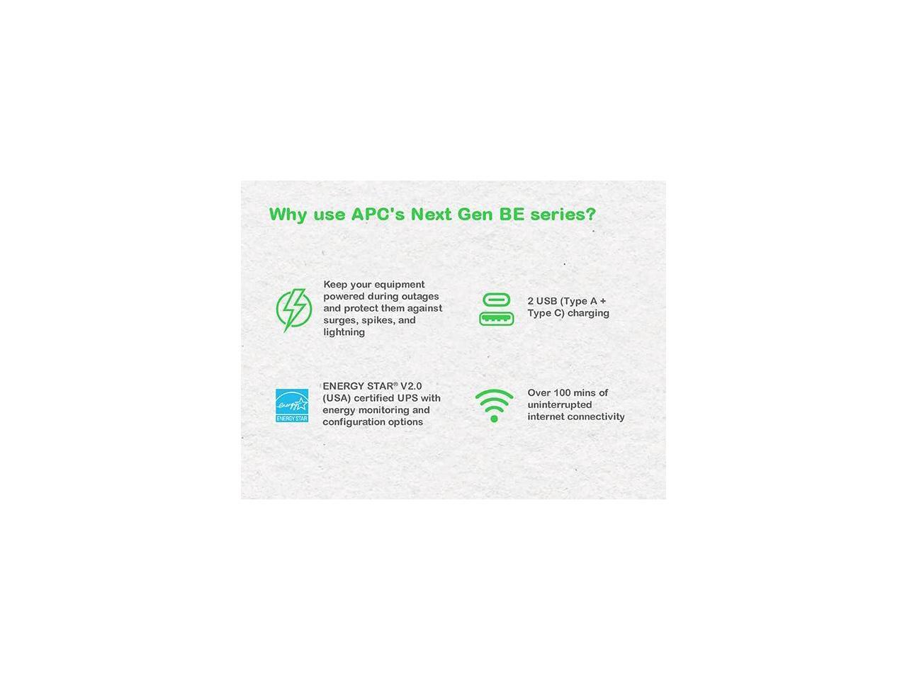 APC UPS Battery Backup, 500VA Backup Battery with 4 Outlets, Type C USB Charging , BE500G3 Back-UPS