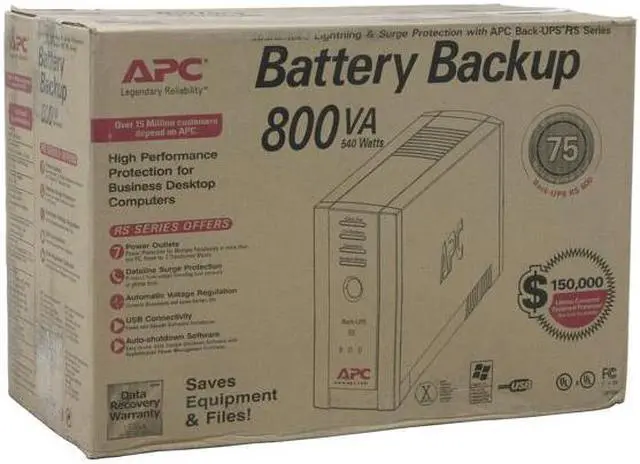 • newegg540W/800VA Output PowerThe APC Back-UPS BR1500 provides a whopping 540 Watts / 800 VA of maximum output capacity, enough to keep a mainstream system running during power outages.