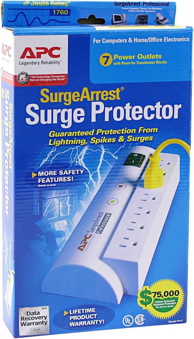The APC PRO7 power surge protector provides premium power protection for small home appliances, and other connected devices. Equipped with anti-surge components such as MOVs and Thermal fuse, the APC PRO7 ensures instantaneous reaction to lightning strikes and wiring faults. In the event that surge components are damaged due to power spike or over voltage, the protector can cut off the power and disconnect the equipments, letting no power through to prevent the potential damage to your devices.The APC PRO7 also features protection working indicator to warn you if the circuitry has been damaged, as well as building wiring fault indicator to inform you of potentially dangerous wiring problems in the wall circuit, providing maximum and reliable protection.