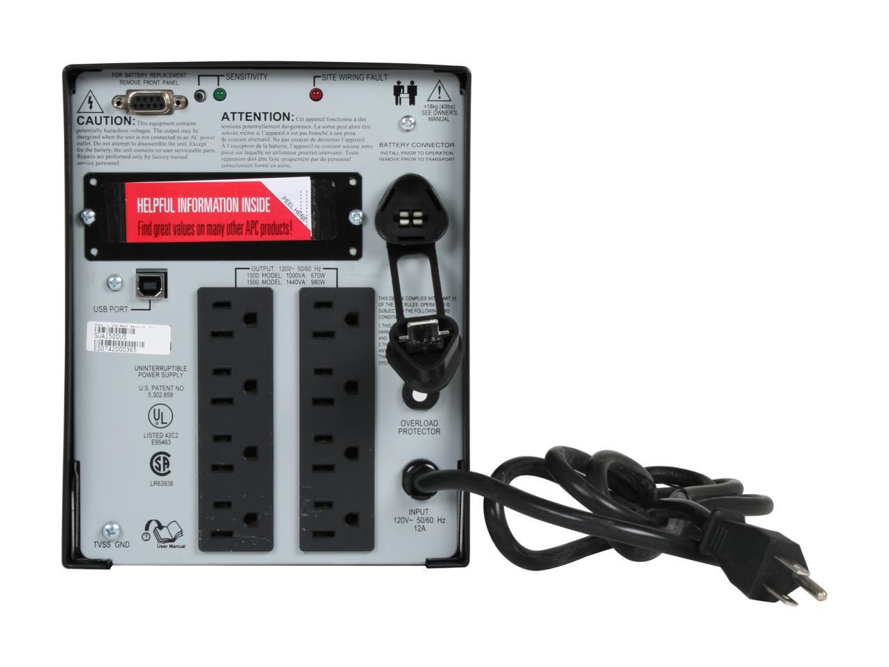 APC SUA1500US 1440 VA 980 Watts (8) NEMA 5-15R Outlets Smart-UPS 1500VA USB & Serial 120V NAFTA