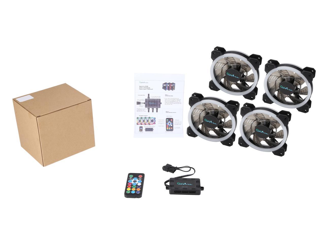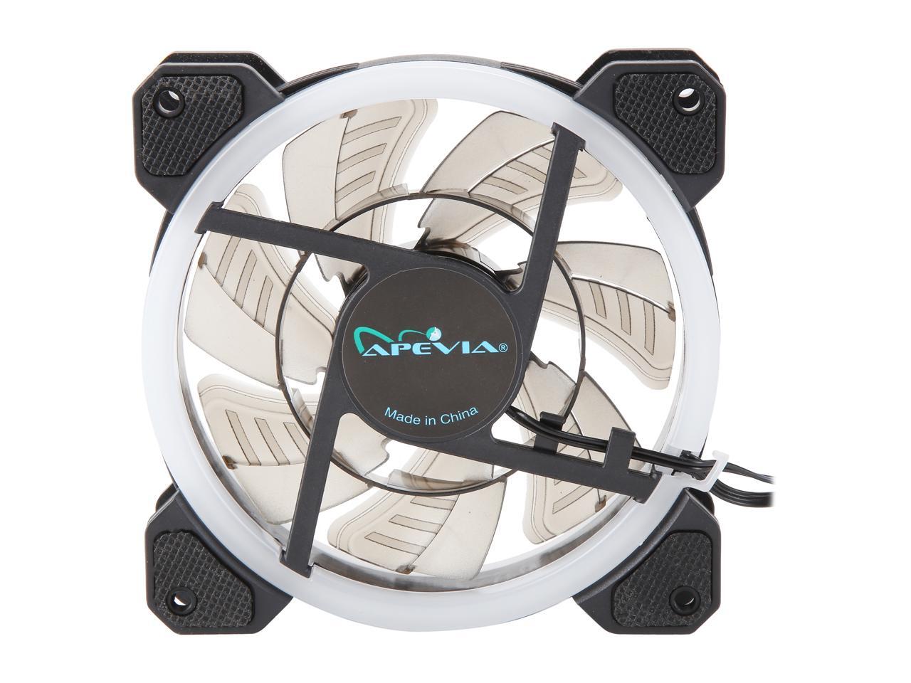 Apevia 412L-RGB Spectra 120mm Silent Dual Ring Addressable RGB Color Changing LED Fan with Remote Control, 16x LEDs & 8X Anti-Vibration Rubber Pads (4-pk)