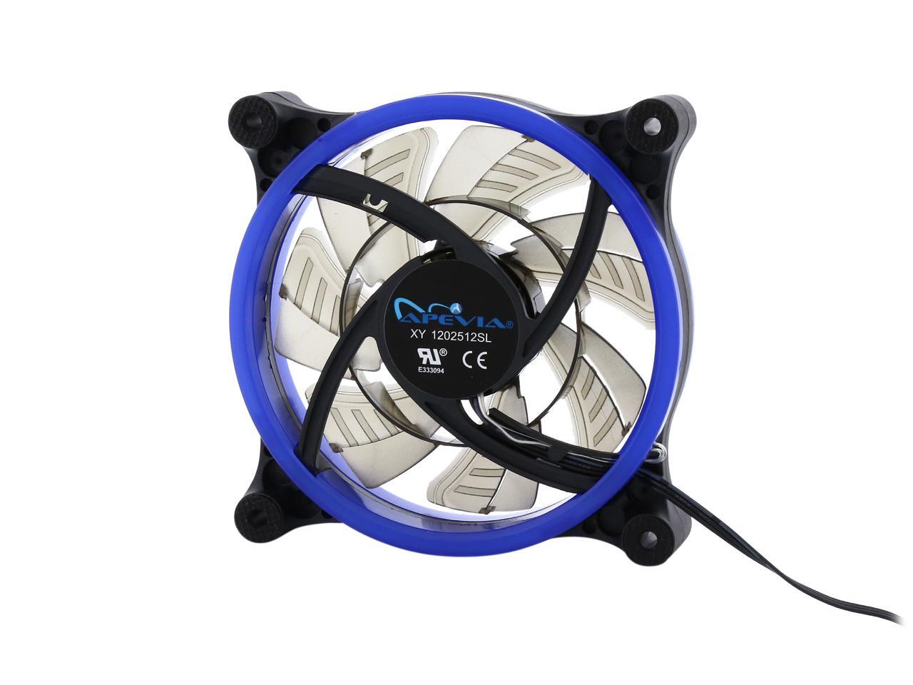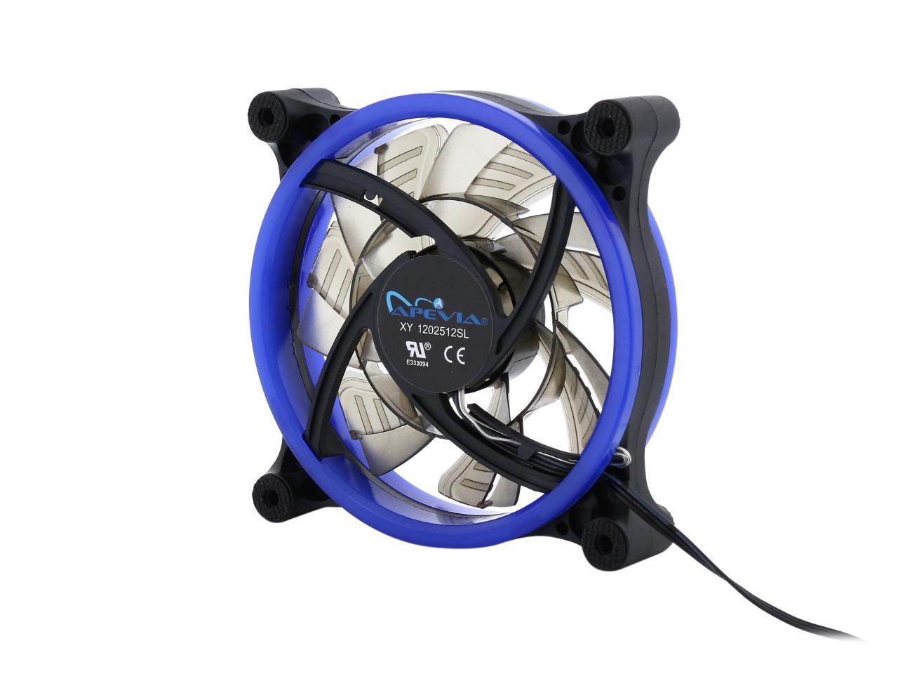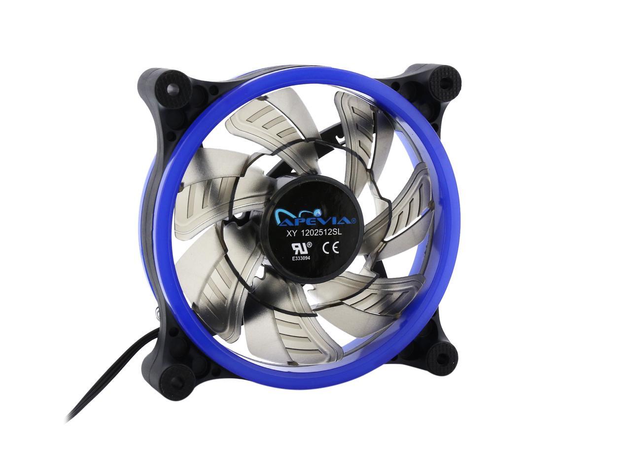 | Features | Improve cooling and airflow of your case/system with this silent Apevia 120mm blue LED fan. With 7 black blades and 32 blue led lights, it produces better cooling performance and brings out the most magnificent blue lights to this fan. Anti-vibration rubber pads on all four corners keep the fan super silent. It offers incredible cooling to increase the longevity and stability of the system and components; meanwhile, adds glamour and character to your PC. |