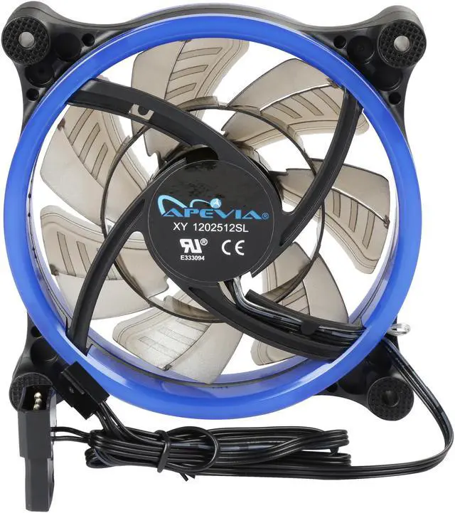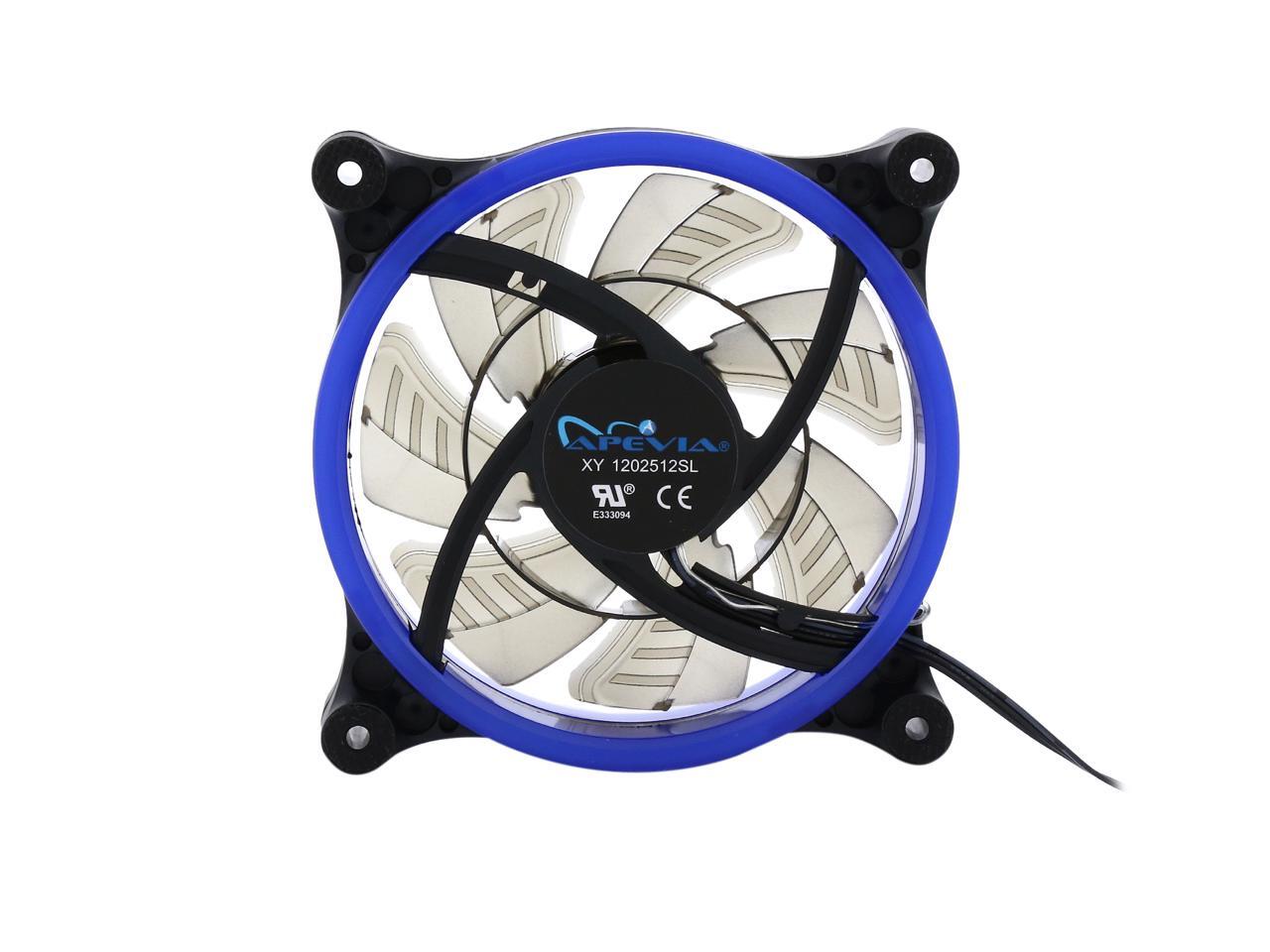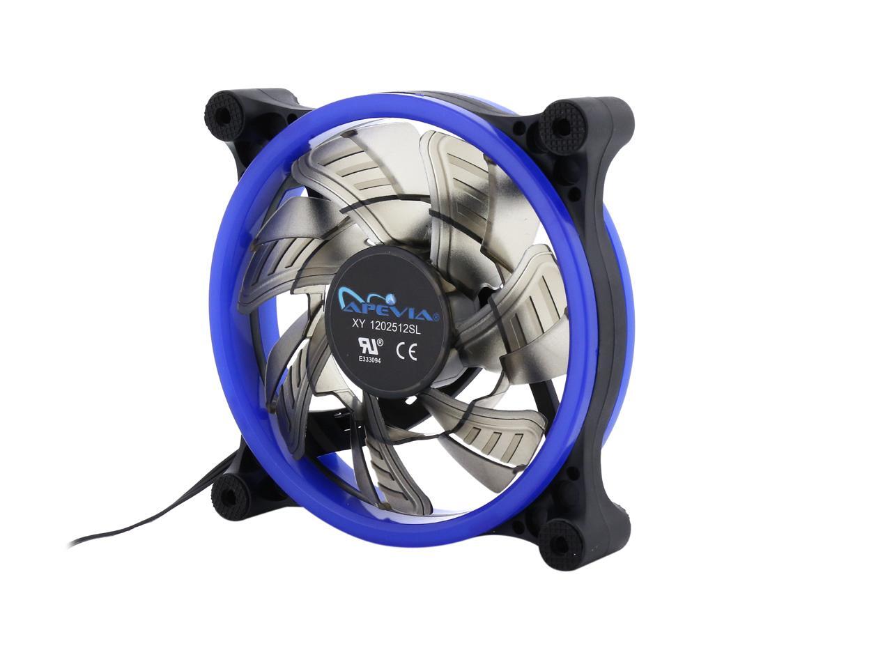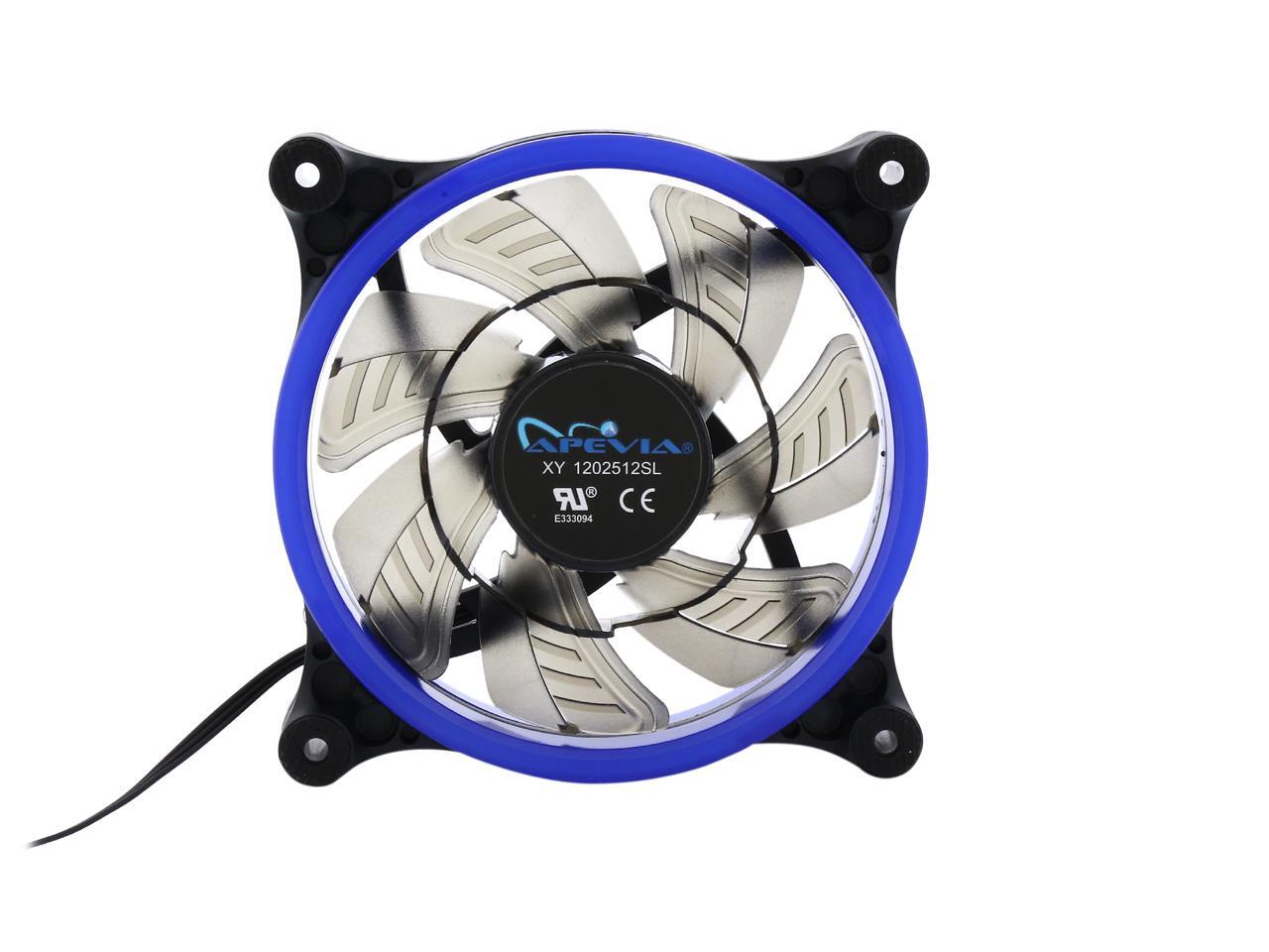 | Features | Improve cooling and airflow of your case/system with this silent Apevia 120mm blue LED fan. With 7 black blades and 32 blue led lights, it produces better cooling performance and brings out the most magnificent blue lights to this fan. Anti-vibration rubber pads on all four corners keep the fan super silent. It offers incredible cooling to increase the longevity and stability of the system and components; meanwhile, adds glamour and character to your PC. |