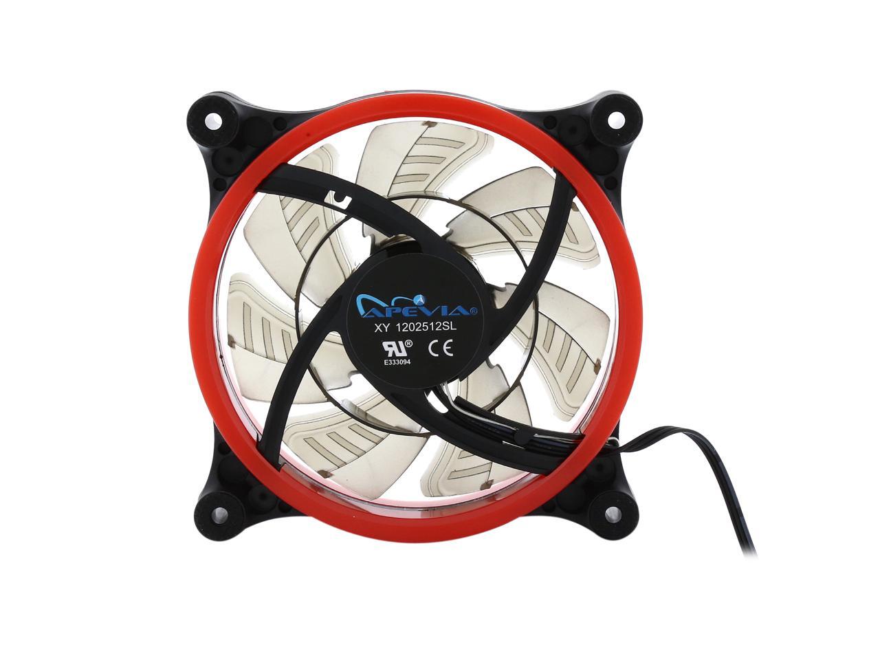 | Features | Improve cooling and airflow of your case/system with this silent Apevia 120mm red LED fan. With 7 black blades and 32 red led lights, it produces better cooling performance and brings out the most magnificent red lights to this fan. Anti-vibration rubber pads on all four corners keep the fan super silent. It offers incredible cooling to increase the longevity and stability of the system and components; meanwhile, adds glamour and character to your PC. |