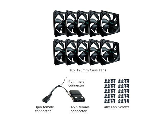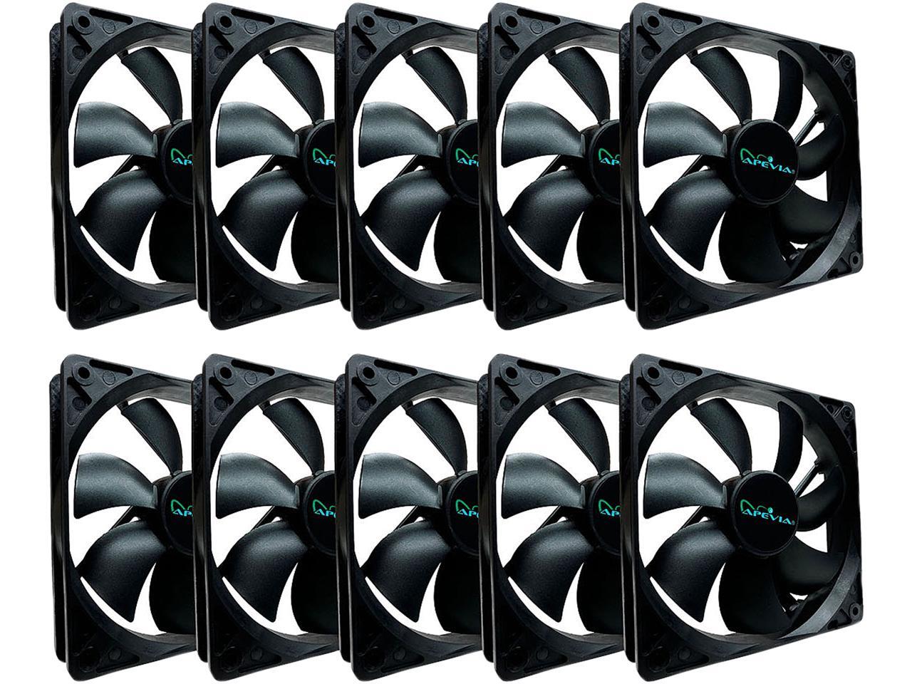 Apevia CF1012S-BK 120mm 4pin Molex + 3pin Motherboard Black Case Fan (10-pk)