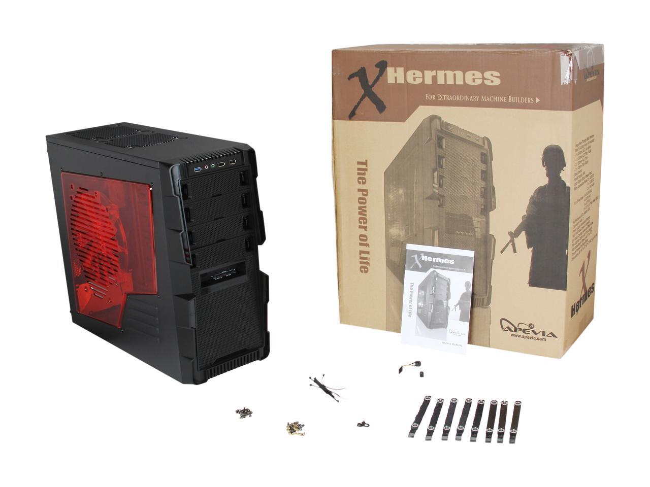 APEVIA X-Hermes X-HERMES-RD Black / Red Steel ATX Mid Tower Computer Case w/ Side Window-Red