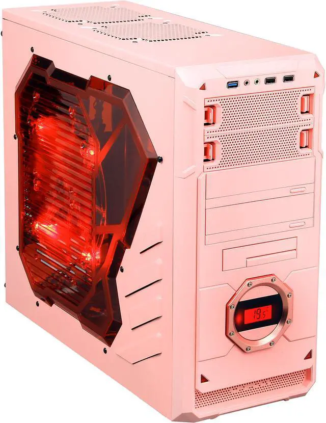 Great Front PanelThe APEVIA X-DREAMER4 Series X-DREAMER4-PK features a great front panel with I/O ports at the top for easy access to two USB 2.0, one USB 3.0 and two audio ports. The front panel also offers an LCD temperature display to show temperature at a glance, power and reset buttons, and HDD and power LEDs.