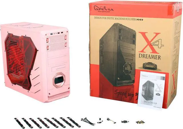 Phenomenal Airflow and CoolingThe APEVIA X-DREAMER4 Series X-DREAMER4-PK features four 120mm fans, one in the front, one in the rear and two on the top. One 200mm Side red LED Fan ensures efficient heat dissipation for CPU and VGA card in an attractive way.
