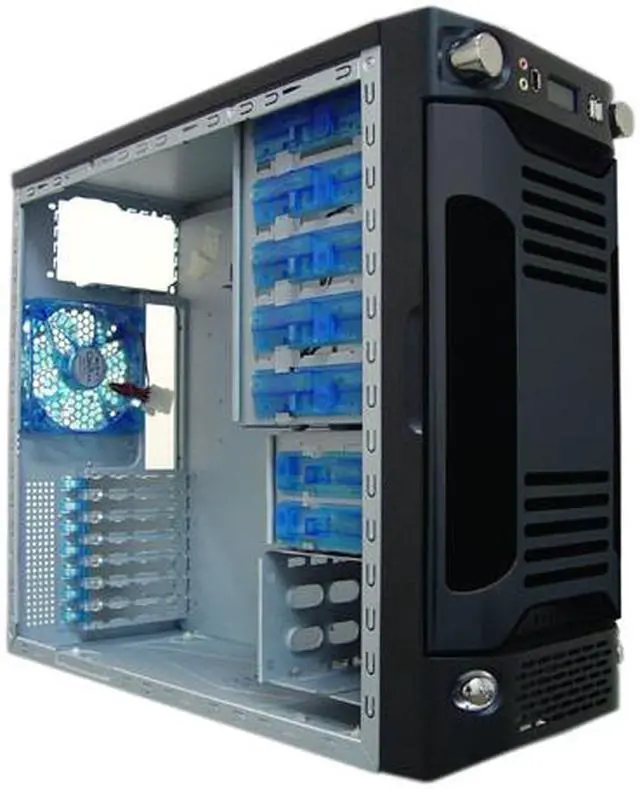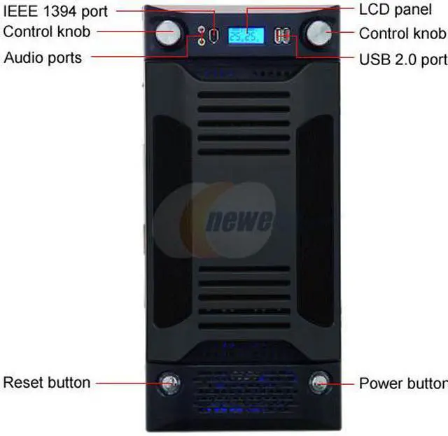 | Features | Large See-Through Window 2 x 120mm Cooling Fans at Rear & Side Tool Free Installation Front LCD with 2 Temperature Sensors 2 x Fan Speed Controller Intel HD and ac 97 audio support for 7.1 and 5.1 audio systems NVIDIA 8800GTX Compatible Fits Motherboard Size up to 11" x 12" |