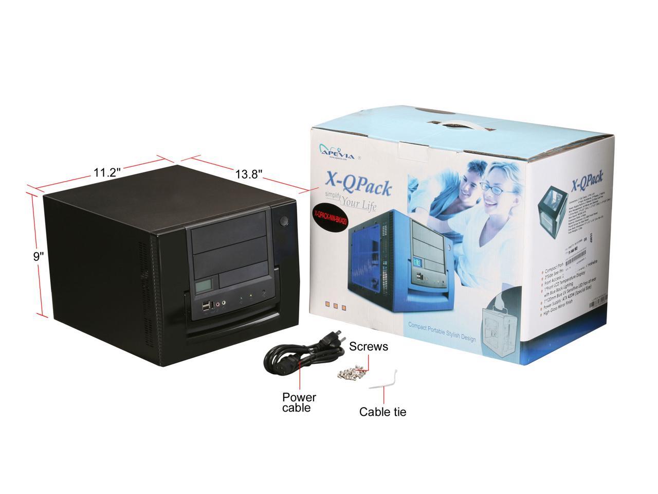APEVIA X-QPACK-NW-BK/420 Black Aluminum 1.0 w/ ABS plastic front panel Micro ATX Desktop Computer Case 420W Power Supply