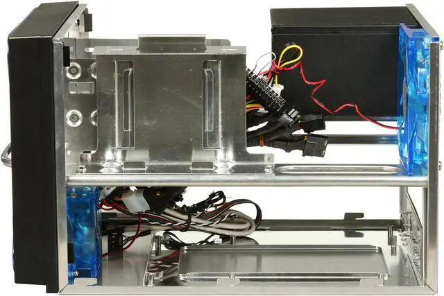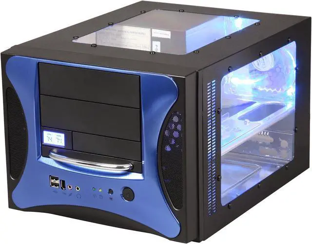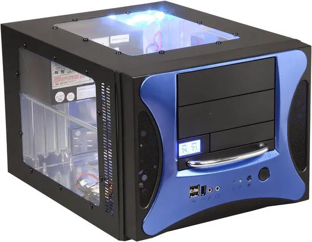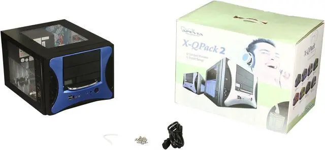 The X-QPACK2 boasts improved cooling over previous models, a 500W PSU with its own 120mm fan, durable steel handle for easy portability, and a unique, modern blue exterior. Its front 80 mm and rear 120 mm fan each sport a blue UV light. The front panel gives you a temperature readout with blue backlight, two USB 2.0 ports, 1 FireWire, and 2 audio ports.