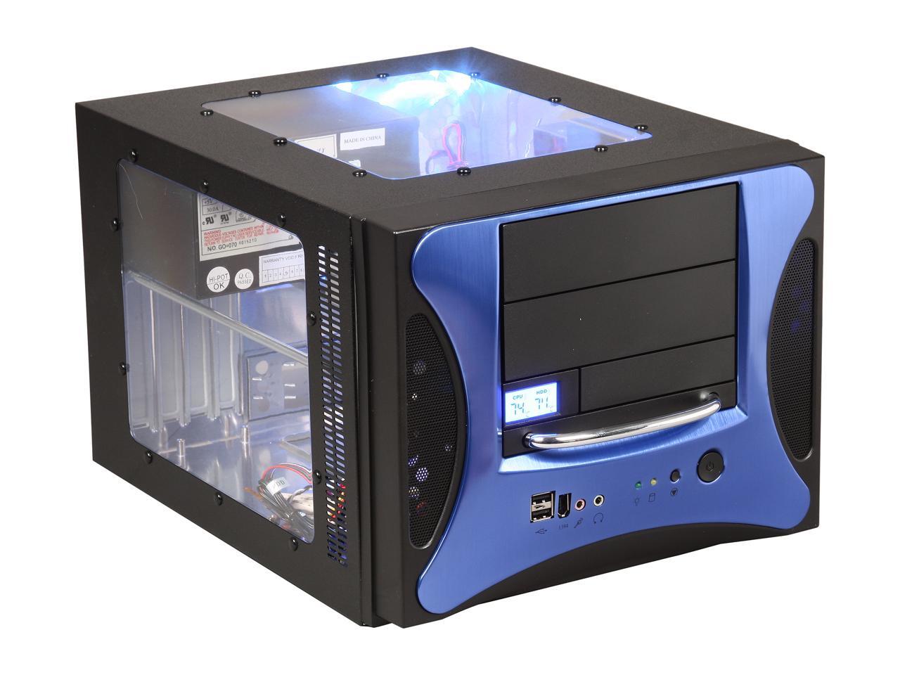APEVIA X-QPACK2-BL/500 Black/ Blue Aluminum Body/ Front Mask Micro ATX Desktop Computer Case 500W Power Supply