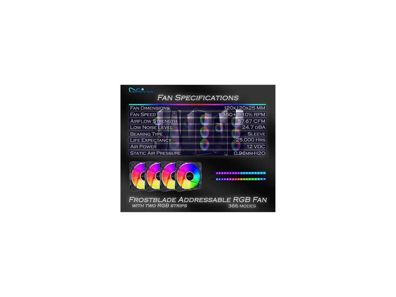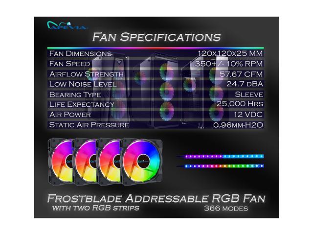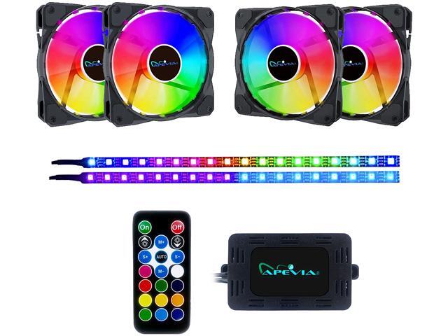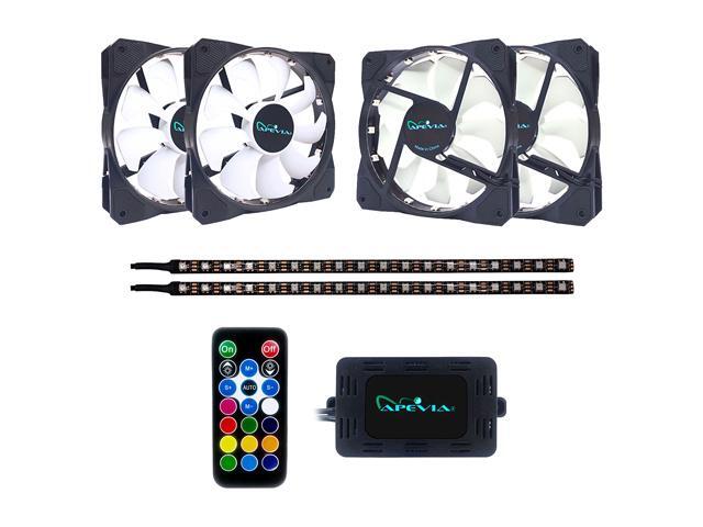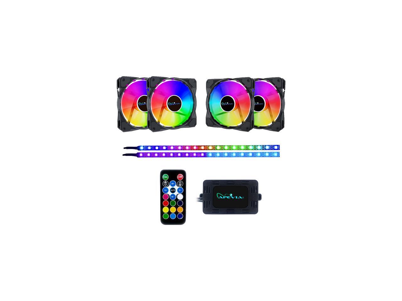 Apevia FR412L2S-RGB FrostBlade 120mm Silent Addressable RGB Color Changing LED Fan (4 fans) + 2 x Color Changing Magnetic LED Strips & 4-pin Control Box and RF Remote (4 + 2 Pack)