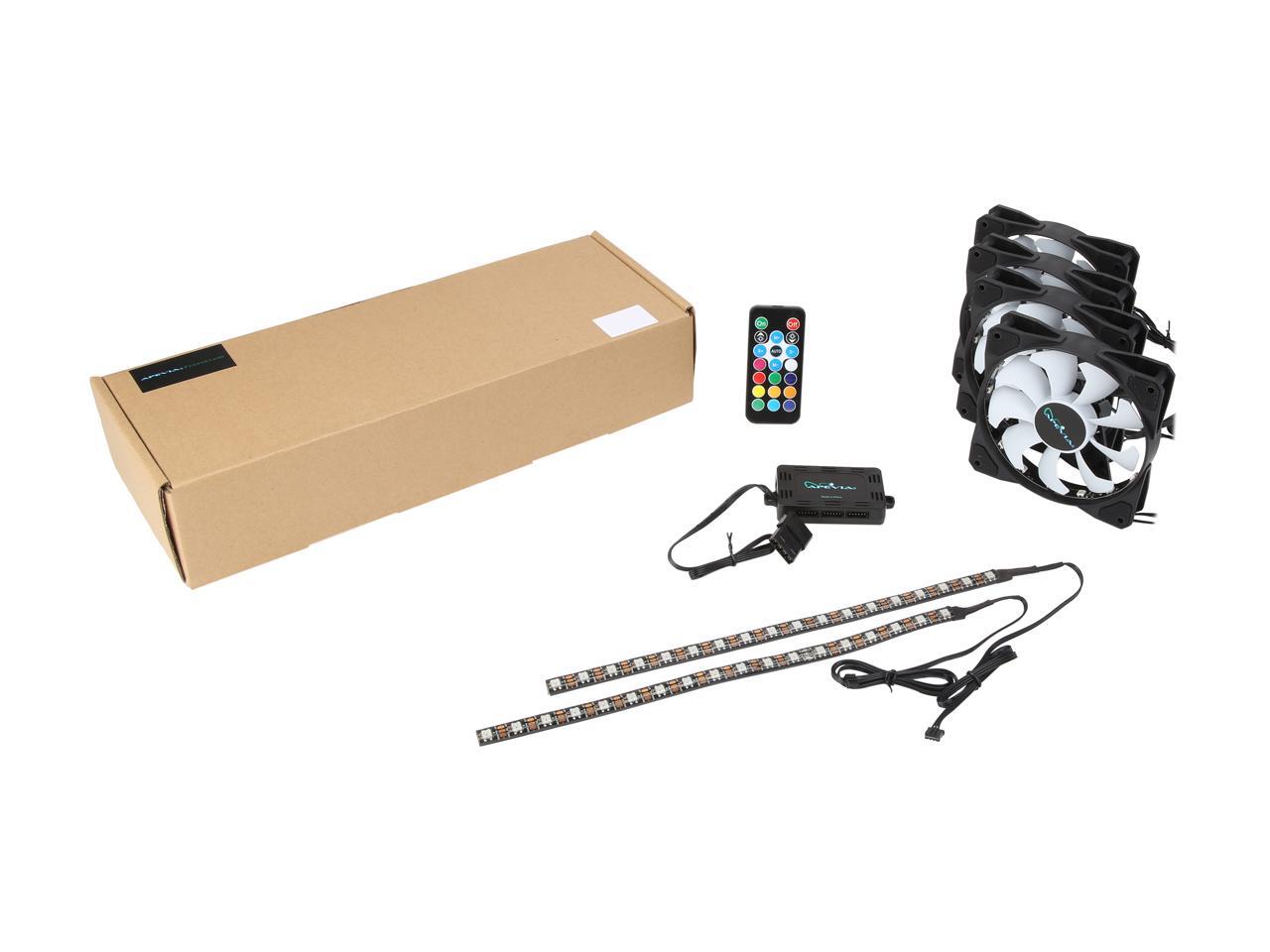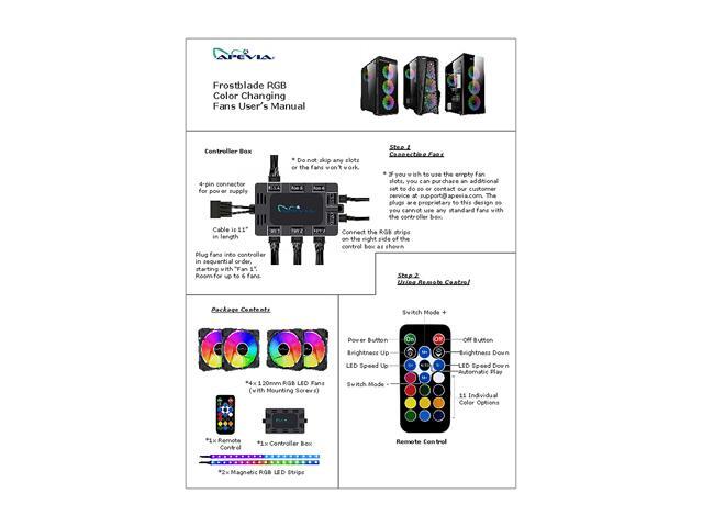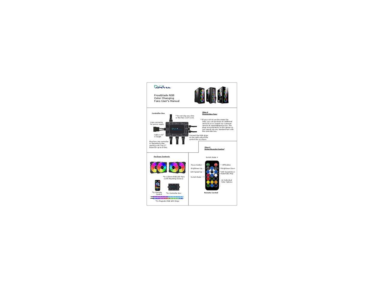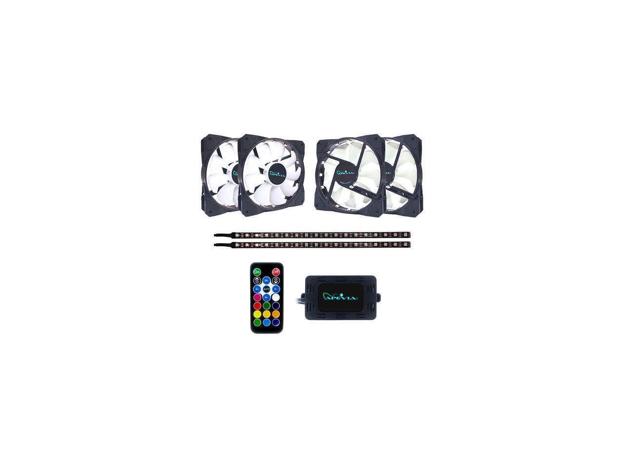 Apevia FR412L2S-RGB FrostBlade 120mm Silent Addressable RGB Color Changing LED Fan (4 fans) + 2 x Color Changing Magnetic LED Strips & 4-pin Control Box and RF Remote (4 + 2 Pack)
