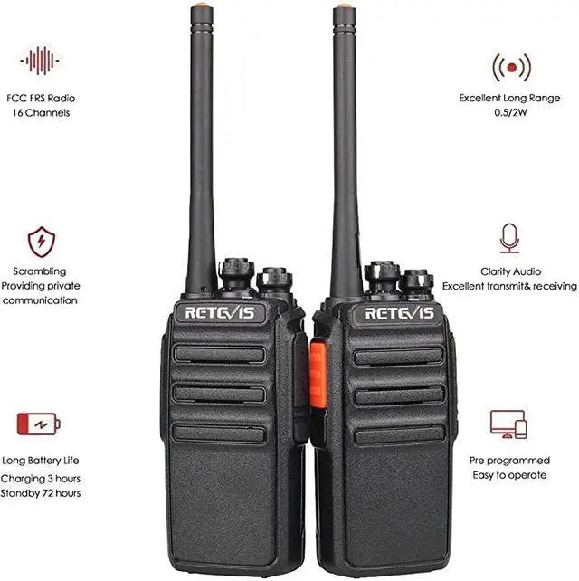 *****Walkie talkies for adults with FCC certificated allows non license operate; perfect for your business work or pleasure use; extremely control teams communications and always on the move without additional leg work *****You cant beat how clarity audio performance on both reception and transmit; two-way radios long range is surprisingly far you thought; 1100mAh rechargeable walkie talkies battery lasts for days; multi USB charging design make charge radios more easier; and get constant conversations *****Heavy-duty walkie talkies long range with fixed antenna avoid the high gain antenna poking problems; high quality build for long life use *****Multi functions totally meet your various area using; featuring of VOX ensure handsfree operation; 40CTCSS 168DCS privacy codes make your communication with encryption *****Simple and convenient return process; We provide 2 year warranty and 30 days no reason to return; 2 year warranty for radio body and 2 month warranty for accessories