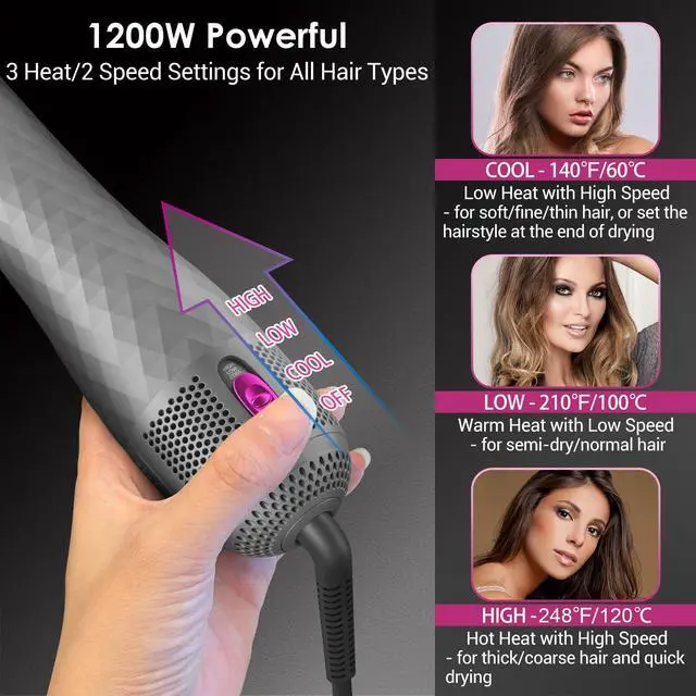 3 in 1 Hair Dryer Brush with a maximum temperature of 120?, 30s quick heating meet various needs such as blow drying, straightening, and smoothing hair.
