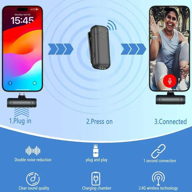 | Included Components | 2 Noise Reduction Microphones, 200 mah Charging case, USB C port Receiver, USB C to Lightning port Transmation Adapter, USB C to USB 2.0 port Transmation Adapter |