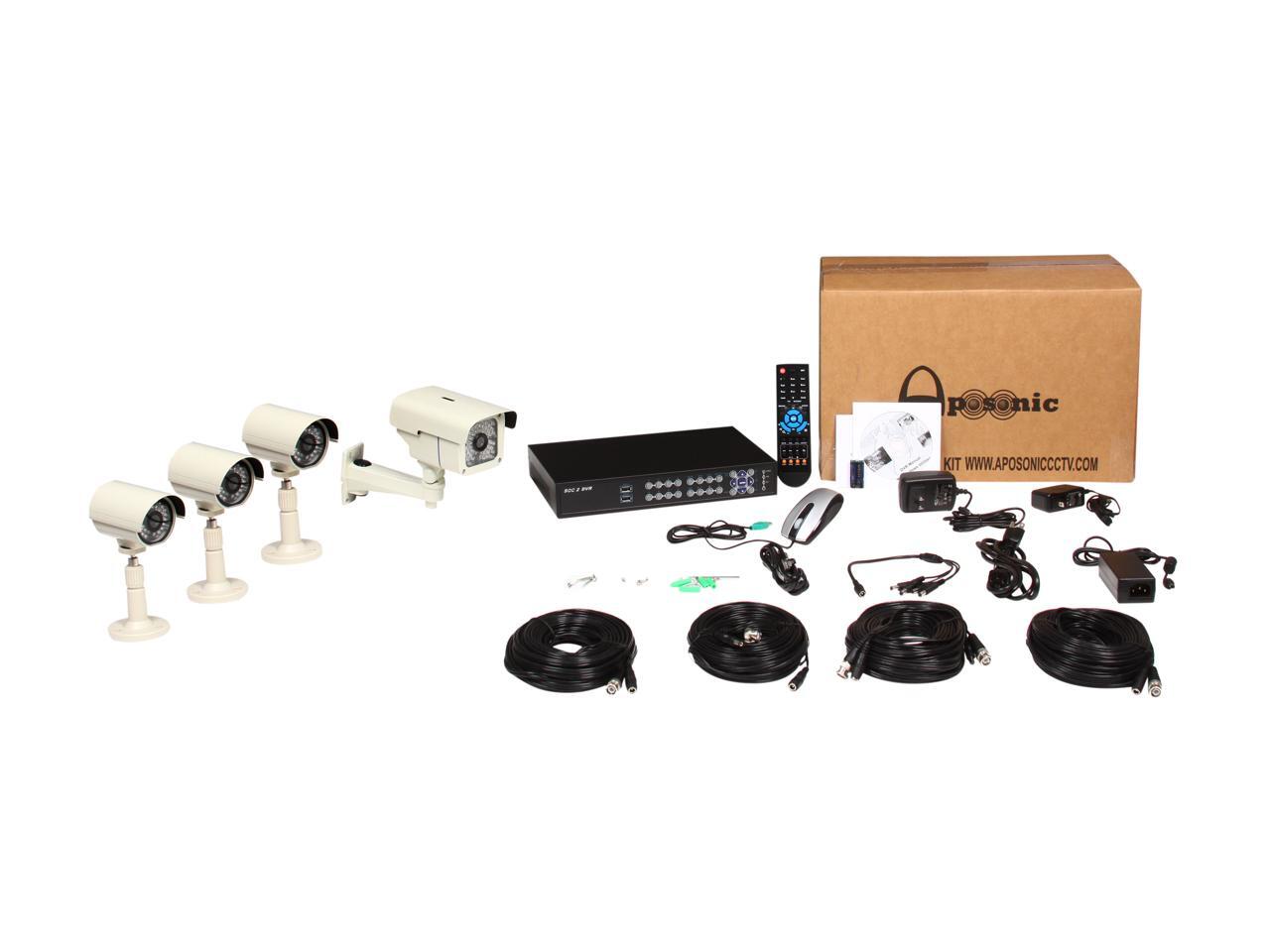 Aposonic A-BR18B4-E 8 Ch 960H DVR + 4x Sony Super HAD II CCD 700 TVL Bullet Cameras with Mobile Access Surveillance Kit, Mac OS X App fully supported (FREE UPGRADE 1TB)