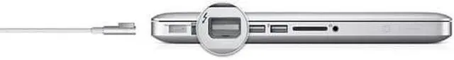 The 13.3" MacBook Pro Notebook Computer from Apple is a powerful notebook computer with an innovative aluminum unibody design. It is loaded with advanced power management features and an integrated battery, which work together to provide up to 7 hours of wireless web browsing. You may notice an unfamiliar logo next to one of the ports on the left side of the system. This is Thunderbolt, a high-speed interface that can move data at an amazing 10 Gbps, which is double that of USB 3.0. The MacBook Pro has a FireWire 800 and two USB 3.0 ports as well.