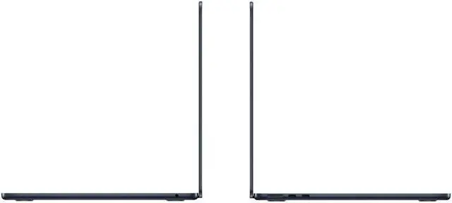 The aluminum case is available in four color options -- dark blue "Midnight" (pictured, left), a warm gray "Starlight", a darker "Space Gray", and classic silver. It weighs 2.7 pounds ( 1.24 kg). Apple estimates battery life at 15-18 hours depending on the task performed. By default, it ships with a MagSafe 3-equipped 35W Dual USB-C Port Compact Power Adapter, but it can be configured with a fast charge 67W USB-C Power Adapter at no extra cost.