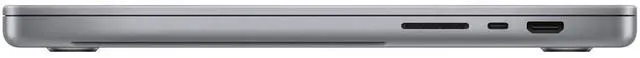 • Ports: 3 × Thunderbolt 4 (USB-C), HDMI 2.1, SDXC card slot, MagSafe 3, 3.5 mm headphone jack
