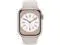 The Apple Watch Series 8 in elegant Starlight features a vivid 1.91 inch Always-On Retina LTPO OLED display with 484 x 396 resolution protected by durable Ion-X glass.