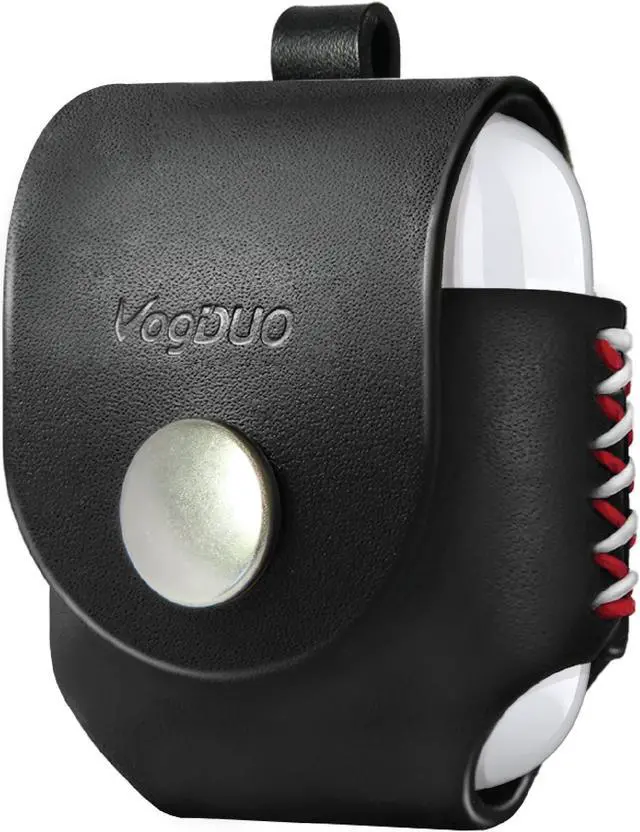 VogDUO- Italian Genuine Leather Case for AirPods, portable carry case, Lightning port slot design, Belt Loop design, premium metal hook for the bag, keychain or jeans, YKK button applied- Black
