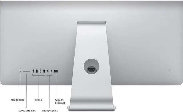Outfitted with 802.11ac Wi-Fi (backwards compatible with 802.11a/b/g/n) for the speediest hook-ups to your home network, this iMac is also configured with Bluetooth 4.0, as well as an SDXC card slot for extra storage, four USB 3.0 ports, two Thunderbolt 2 ports, and a Gigabit Ethernet (RJ-45) jack. It also has a Kensington lock slot for added security.