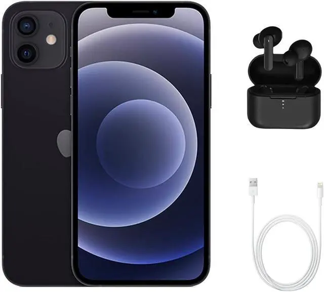 Apple iPhone 12 A2172 (Fully Unlocked) 128GB Black (Grade A) w/ Wireless Earbuds
