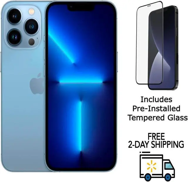 Apple iPhone 13 Pro A2483 (Fully Unlocked) 128GB Sierra Blue (Grade A) w/ Pre-Installed Tempered Glass