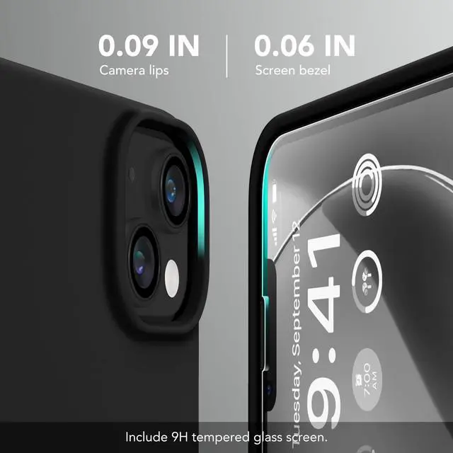 [Tempered Glass Screen Protector] This iPhone 13 & 14 protective case comes with a 9H hardness tempered glass screen protector with 3D round edges, ensuring full coverage and a bubble-free installation. offering strong, scratch-resistant protection and drops while maintaining smooth and responsive touch
