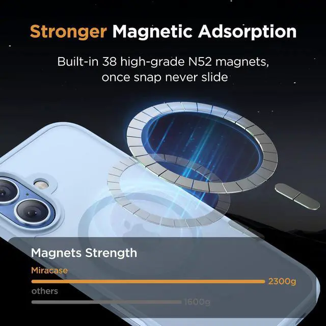 [Enhanced MagSafe Compatibility]: Specifically designed for the iPhone 17, this case seamlessly aligns with MagSafe chargers for a secure connection and faster wireless charging. Built-in 38 N52 Magnetis, it also provides strong attachment to magnetic accessories, with an 60% increase in magnetic strength compared to other magnetic cases.