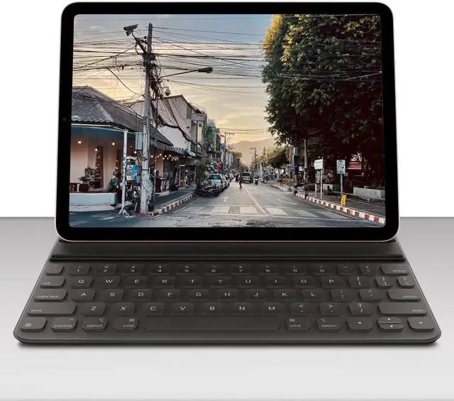 Expand your productivity with the Apple Smart Keyboard Folio for 11" iPad Pro and iPad Air (4th & 5th Generation). This portable full-size keyboard connects directly to your 1st to 4th generation 11" iPad Pro in addition to a 4th or 5th generation iPad Air without needing to be charged or paired. Simply attach the keyboard and start typing. Once you're finished, you can fold it into a stand and adjust it for the most comfortable viewing angle. The stylish folio also serves as a protective cover for both the front and back of your iPad Pro.