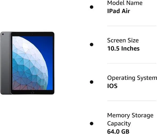 Apple iPad Air (3rd Generation) A12 Bionic 64GB Flash Storage 10.5" 2224 x 1668 Tablet MUUK2LL/A Space Gray (Wi-Fi Only)