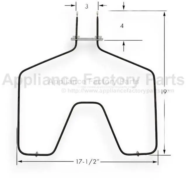OVEN ELEMENT 458521 AFTERMARKET . TS44M0001 CH5853 , 458521 , CH5853 , RP44K5012 , RP44M00001 , RP44M0001 WAS EMHCH5853 - 15 1/4" x 18" partially open element with 4" deep push-on wire terminals for Roper type ranges