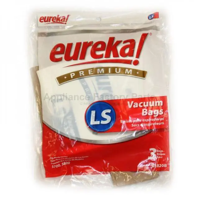 Eureka style LS OEM vacuum bags 3 pk. Style LS, fits Eureka 5700-5739, 5800-5839 Uprights Genuine Eureka Bag FA 3 PACK STR23167 (61820) (PUR 1, 12, 48)