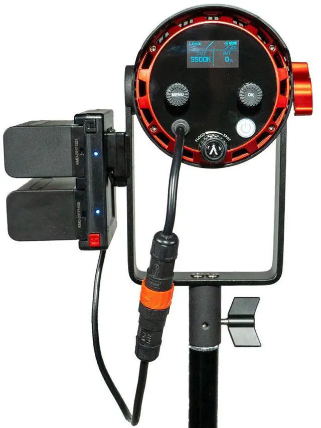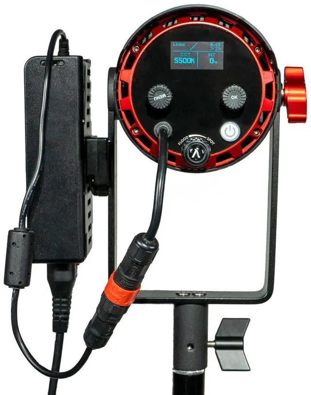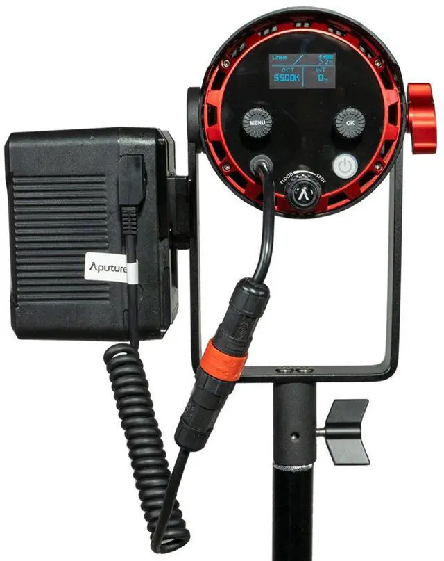 The Light Storm 60x is designed for on-the-go convenience without compromising on power. It supports multiple power solutions, including the included AC adapter or a weatherproof DC power connector. For field use, it can operate using the included Dual Sony-NP-F Battery Plate Adapter or a cinema battery equipped with a D-Tap output, such as a V-Mount Battery. These power options can be efficiently mounted onto the V-Mount receiver located on the side of the LS 60x's yoke, ensuring a streamlined and agile setup. Durability is a cornerstone of the LS 60x, which boasts a weatherproof construction that is both dust and water-resistant.