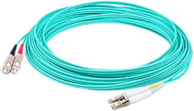 AddOn's 5M Laser-Optimized Muliti-Mode fiber (LOMM) Duplex LC/SC Aqua Patch Cable is a laser-optimized multimode fiber (LOMMF) cable which offers backward compatibility with existing 50/125 equipment as well as providing the performance overhead needed to support both 10 gigabit applications and laser light sources. This fiber-optic cable provides the fire protection needed to run within walls and air plenums eliminating the need for conduit. The low-smoke Zero-Halogen jacket protects from toxic and corrosive gases in badly ventilated spaces and other areas where it is most crucial. In addition, it provides 10 gigabit transfers up to 300 meters utilizing an 850nm VCSEL source. Optical Multimode 4 (OM4) fiber supports 2000 MHz/km EMB at 850nm. This Patch Cable is recommended for connections between fibre patch panels, hubs, switches, media converters and routers, etc. Furthermore, this caple provides higher speeds and increased bandwidth, compared to conventional twisted-pair copper cable.