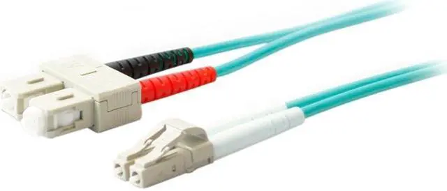 AddOn's 7M Laser-Optimized Muliti-Mode fiber (LOMM) Duplex LC/SC Aqua Patch Cable is a laser-optimized multimode fiber (LOMMF) cable which offers backward compatibility with existing 50/125 equipment as well as providing the performance overhead needed to support both 10 gigabit applications and laser light sources. This fiber-optic cable provides the fire protection needed to run within walls and air plenums eliminating the need for conduit. The low-smoke Zero-Halogen jacket protects from toxic and corrosive gases in badly ventilated spaces and other areas where it is most crucial. In addition, it provides 10 gigabit transfers up to 300 meters utilizing an 850nm VCSEL source. Optical Multimode 4 (OM4) fiber supports 2000 MHz/km EMB at 850nm. This Patch Cable is recommended for connections between fibre patch panels, hubs, switches, media converters and routers, etc. Furthermore, this caple provides higher speeds and increased bandwidth, compared to conventional twisted-pair copper cable.