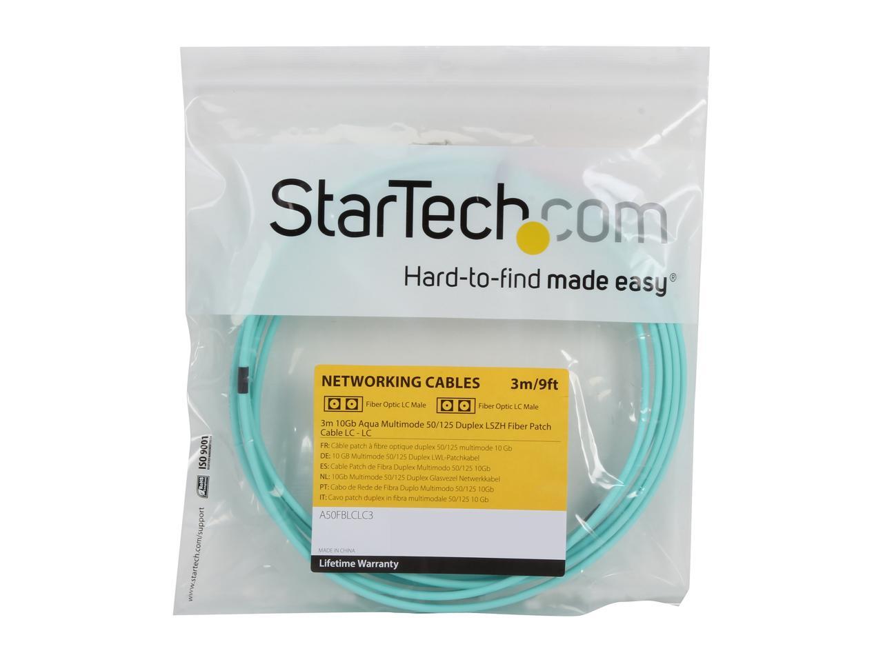 StarTech.com A50FBLCLC3 9.8 ft [3 m] 10 Gb Aqua Multimode 50/125 Duplex LSZH Fiber Patch Cable Male to Male