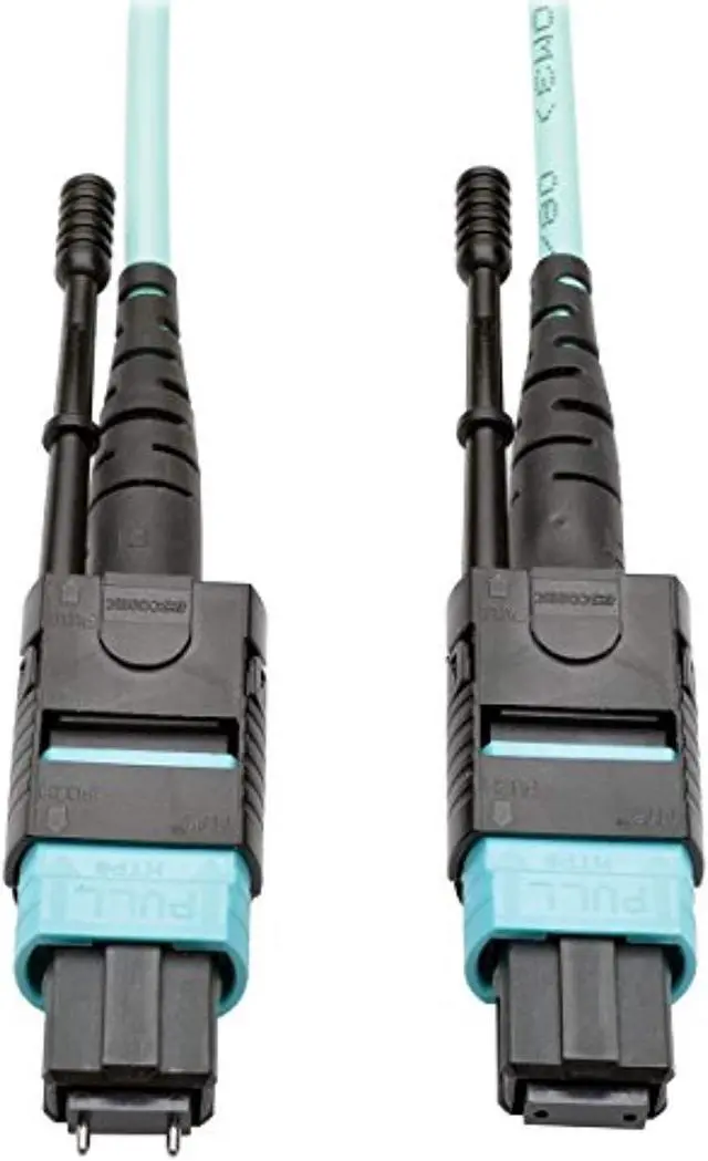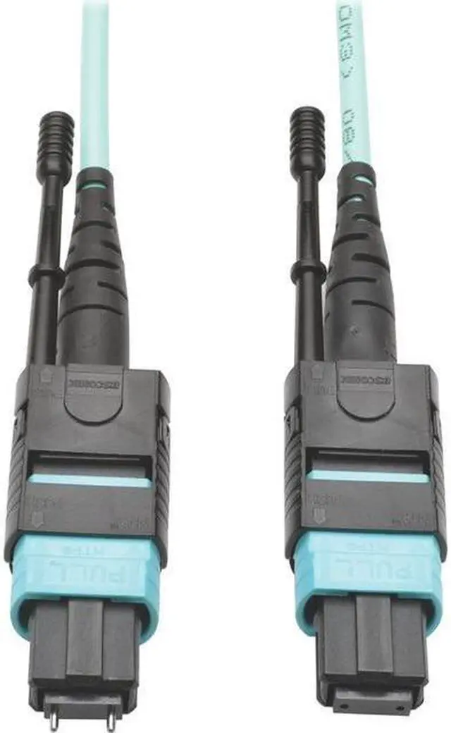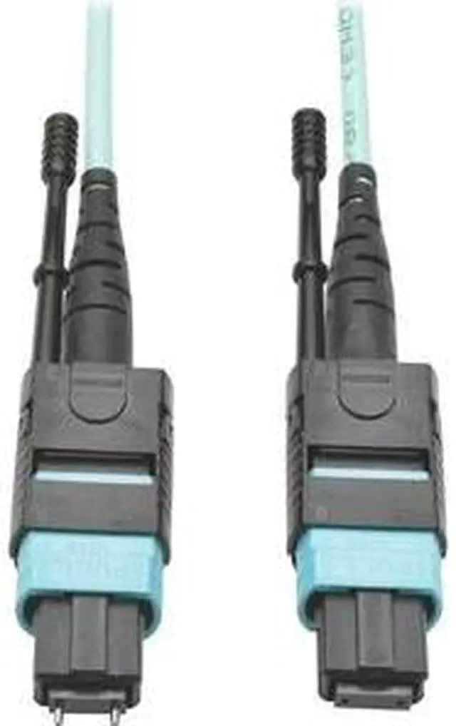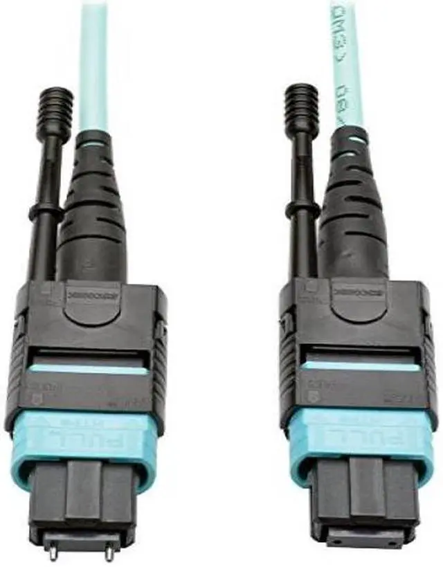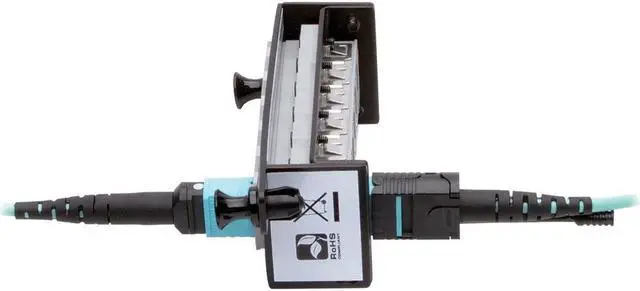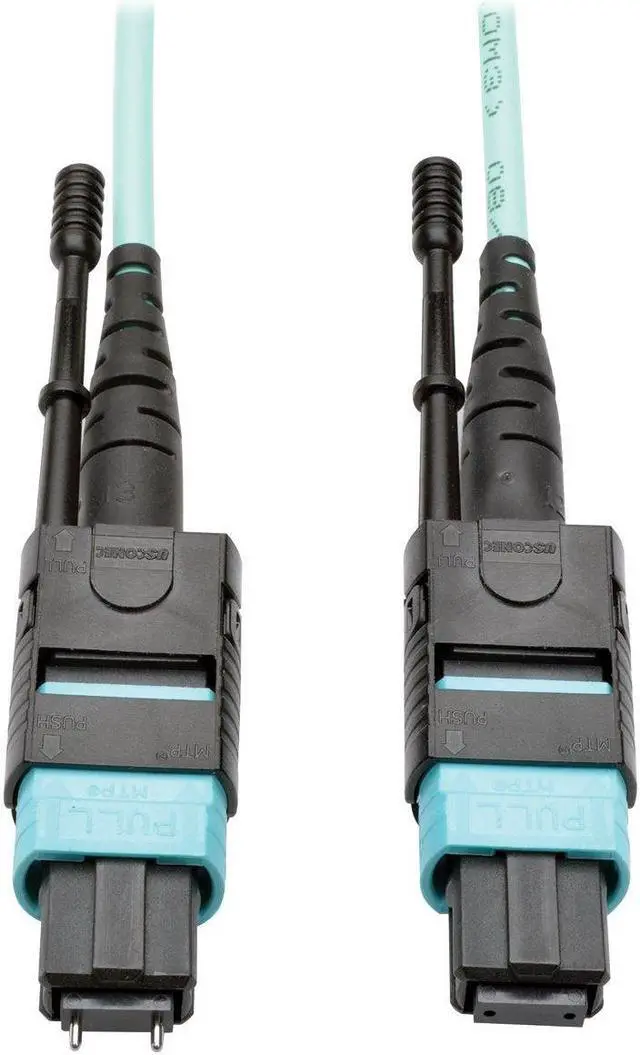 The 12-fiber MTP/MPO connectors are about the same size as SC connectors, but are 12 times denser, freeing up circuit card and rack space for other cables. The cable has documented insertion loss and back reflection testing on every connector and attenuation loss that meets or exceeds current standards. Push/pull tab connectors are easily accessible in high-density data center applications and make the cable easy to install and remove with one hand.