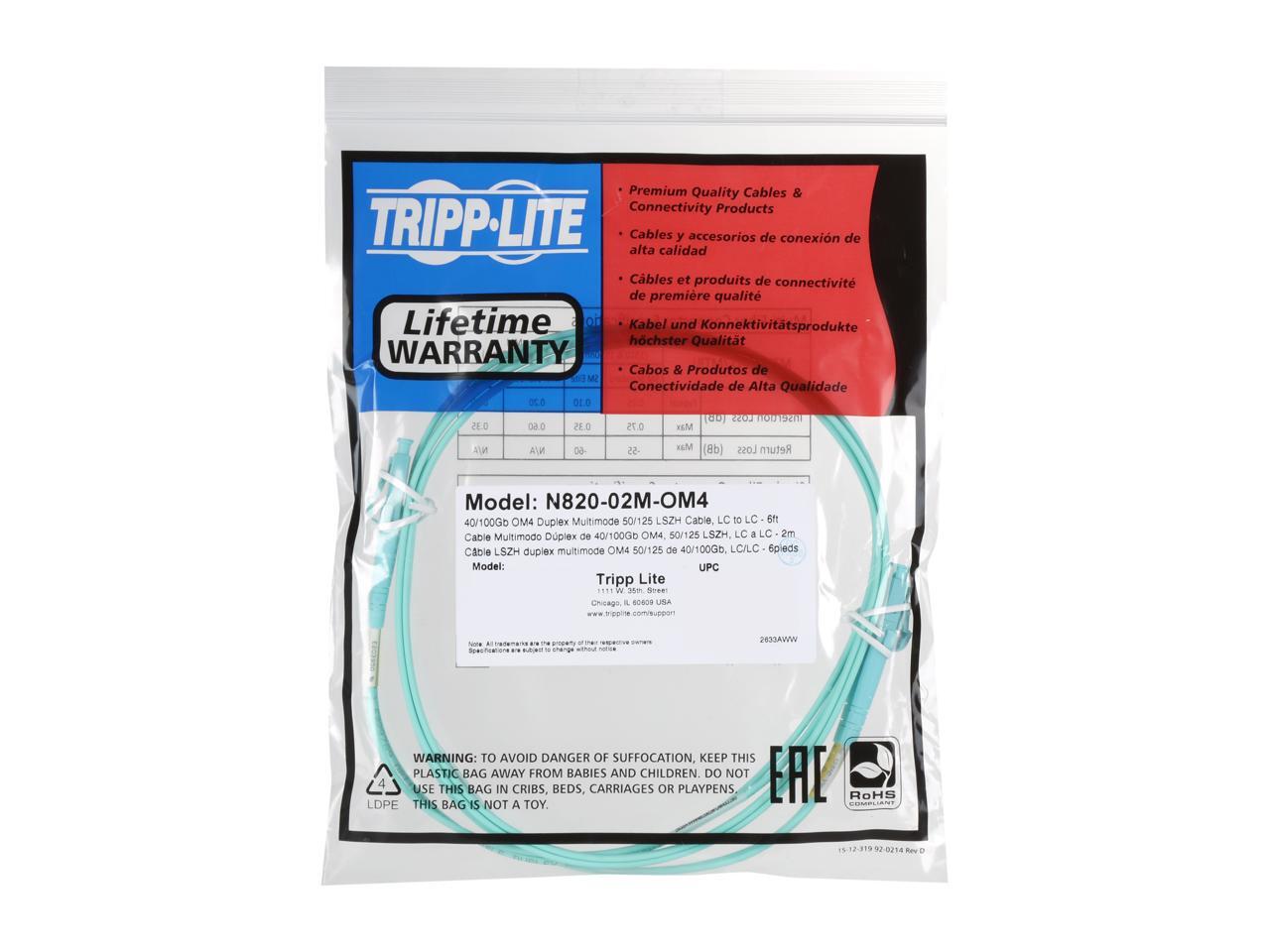 Tripp Lite N820-02M-OM4 6 ft. 40/100Gb Duplex MMF 50/125 OM4 LSZH Patch Cable