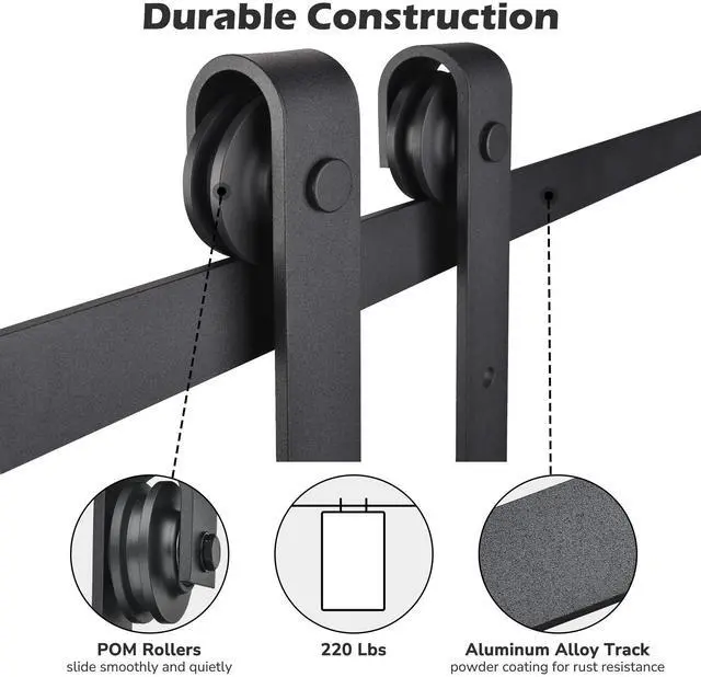- Durable Construction - Made from high-quality aluminum alloy, the track is sturdy enough to withstand up to 220 Lbs without wobbling, while powder coating offers good rust resistance & preventing scratches; POM rollers feature good impact strength to keep a smooth and quiet movement in track