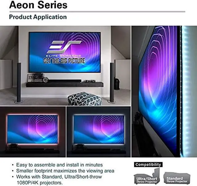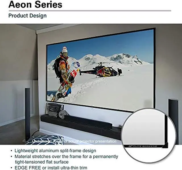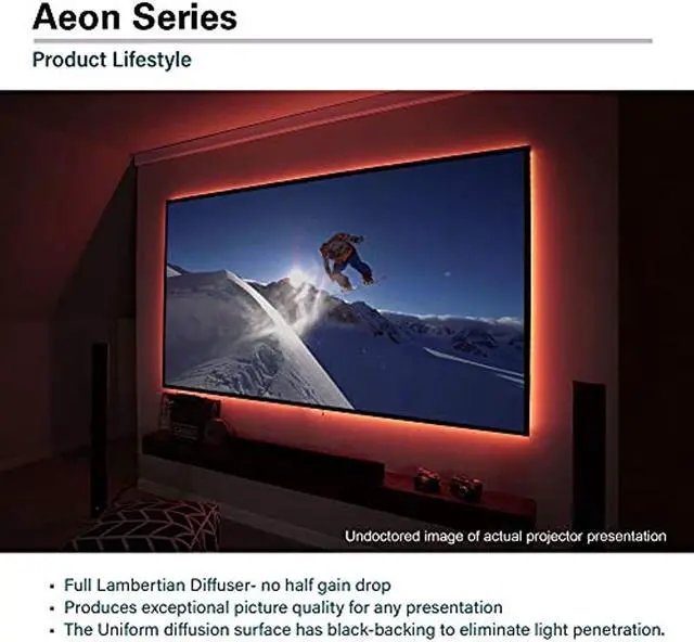 Experience the difference with the Aeon Series CineWhite 110" 16:9 4K Ultra HD Wall Mount Edge Free Fixed Frame Projector Screen, a perfect blend of style, innovation, and quality.