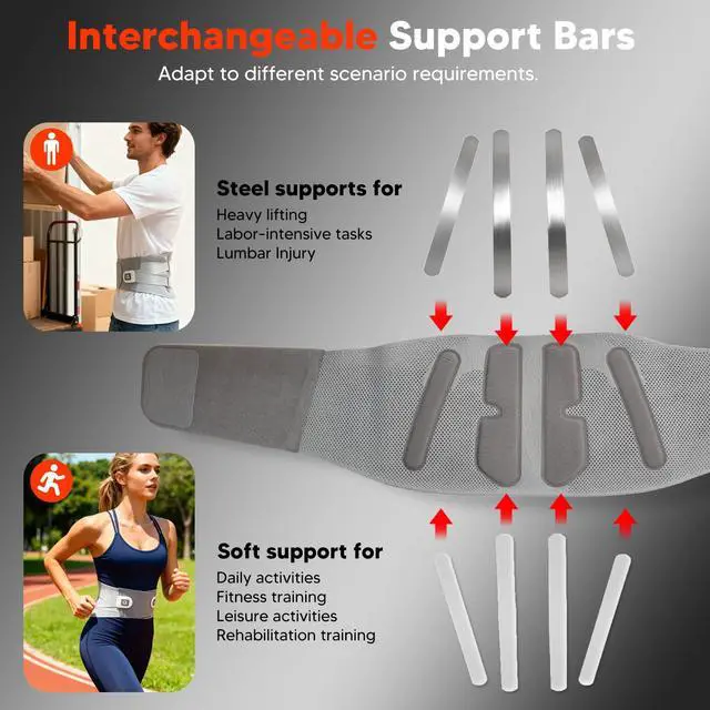 The arboleaf lumbar support back brace is built for everyday use: office sitting, commute, driving, housework, long-time PC posture or gaming, light walking, and general daily movement. A 26° ergonomic lumbar curve follows the natural waist arc for a stable, balanced fit. The adjustable 360° wrap compression belt pairs a main strap with adjustable tension bands to fine-tune tightness, helping this lower back support belt stay secure and centered instead of shifting when you bend, rotate, stand, or sit. An inner steel plate plus resin bars balance firmness and flexibility, giving this lumbar back brace supportive structure without a stiff or bulky feelpractical as a work back brace and a comfortable back support belt for office desk users.Select three heat levels104°F / 122°F / 140°F (40°C / 50°C / 60°C) and four timer presets15 / 30 / 45 / 60 minutes in the removable heating module. The 3000mAh battery supports about 2 hours of warming at 140°F / 60°C and charges via USB-C, making this heated lower back belt convenient for home routines, commute use, car seating, or short travel. Breathable knit mesh improves comfort in warmer seasons, while the plush liner adds a soft touch in cooler monthsso this adjustable back support brace stays comfortable year-round and can be worn over a light clothing layer.Designed for men and women who want additional lumbar back support during daily living, extended sitting time, walking, driving, grocery runs, or light training, this lumbar back support belt delivers a flexible balance of ergonomic curve fit, adjustable compression, and removable heating convenience. If you prefer a clean, intuitive design you can use consistently across work, home, and commute scenarios, the arboleaf back brace offers everyday support in one easy-to-wear package.