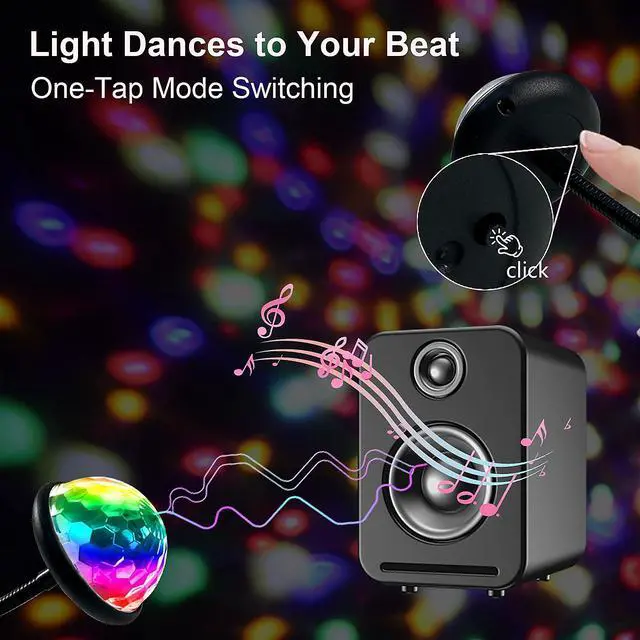 One-Button Control for This Mini Led Disco Ball LightThis mini Led party light features a single button for power and mode switching. Easily switch to Sound-Activated mode where lights flash to your music, or to Auto-Show mode with cycling Led disco colors