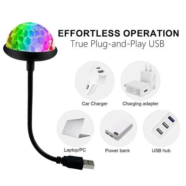 Versatile Led Car Ambient & Party Lights for Every OccasionUse them as Led car music lights or as party lights for clubs, dance parties, New Year's Eve, rooms, game rooms, Christmas, Halloween, birthdays, weddings, and karaoke. This mini DJ disco light instantly upgrades any space or vehicle interior