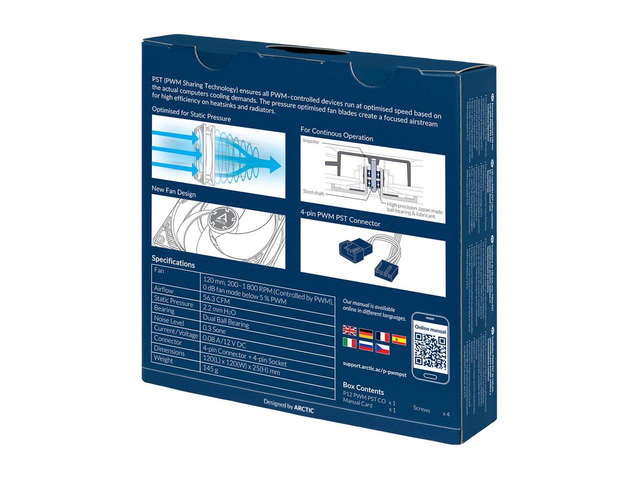 ARCTIC P12 PWM PST CO - Pressure-optimised 120 mm Fan with PWM and PST (PWM Sharing Technology) for Continuous Operation