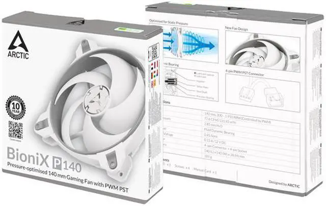 | Features | Optimised for static pressure Ideal choice on heatsinks, radiators and (partly-) covered case vents Broad RPM range for highest performance and low noise level Push- or pull-configuration PWM Sharing Technology (PST) regulates fan speed synchronously Newly developed, very quiet motor Extended life span Available in multiple distinct colors |