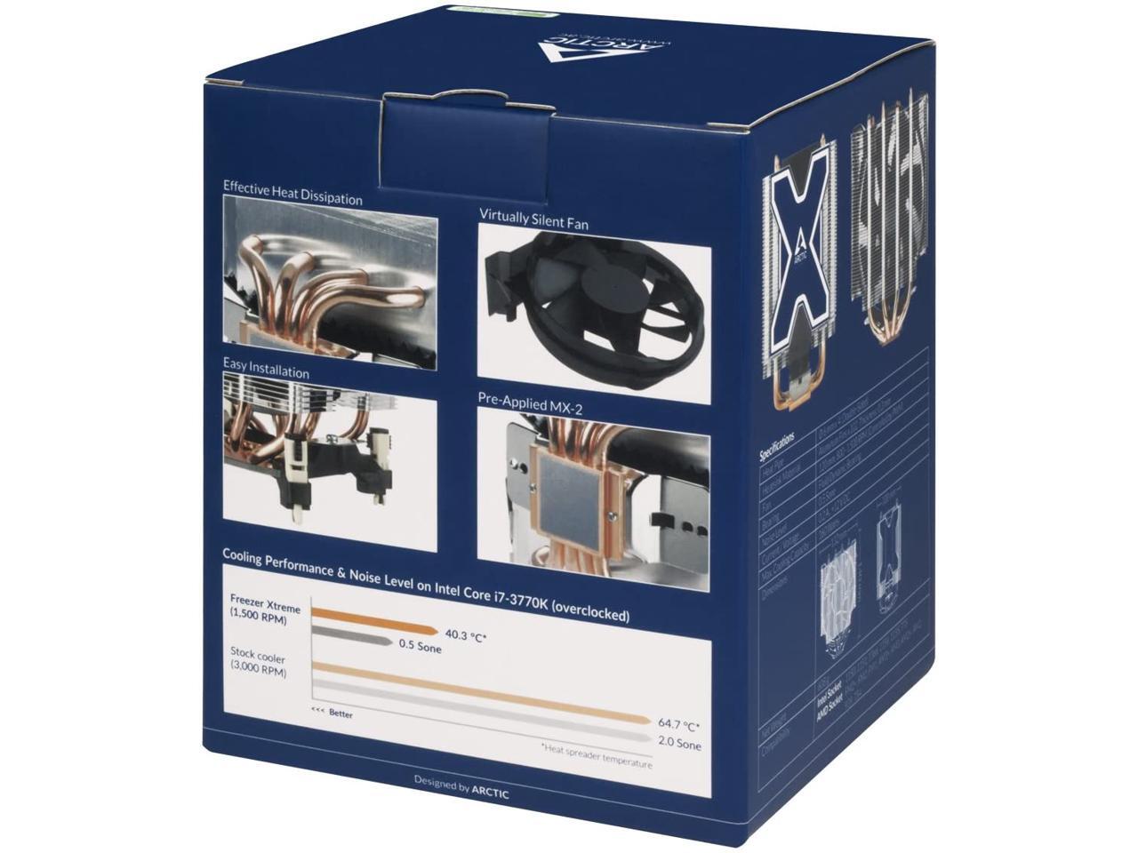 - EXCELLENT COOLING PERFORMANCE: The unique heatsink design consisting of 102 fins and 4 double-sided heatpipes offers excellent cooling performance and improve heat transfer from the CPU. Tested by Hinnavaatlus, the Freezer Xtreme outperformed the stock cooler in reducing the CPU temperature by 18 degrees.